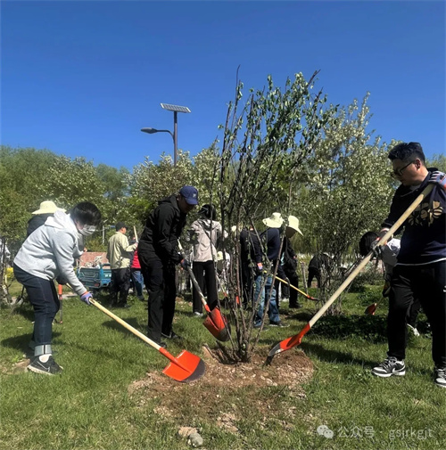 活动当日晴空万里,在公园专业技术人员指导下,开云手机领导率先垂范,与干部职工“并肩奋战”,大家分工明确、协作有序,共同栽种海棠、榆叶梅、碧桃等观赏树木和牡丹、月季、绣球等花卉,为黄河之畔再添新绿。泥土芬芳中,铁锹与笑语和鸣成曲,青年团员们自发组成“搬运苗木小分队”穿梭奔忙保障供给;部分女职工组成“杀菌沃土先锋组”,精准投放药剂为土壤消毒;由青年党员组成的“乔木攻坚团” 更是勇挑重担,主动承担种植冠幅大、重量重的海棠、碧桃等乔木的任务,喊着口号扶正碗口粗的树干,覆土时反复校准树干垂直度,各小组默契配合,现场一片热火朝天。随着“种植先锋队”完成最后一株月季栽种,历时三小时的连续奋战,295株新苗在公园内指定规划区域内安家落户,形成“春观海棠、夏赏绣球、丁香独秀、月季连廊”丰富的景观带。