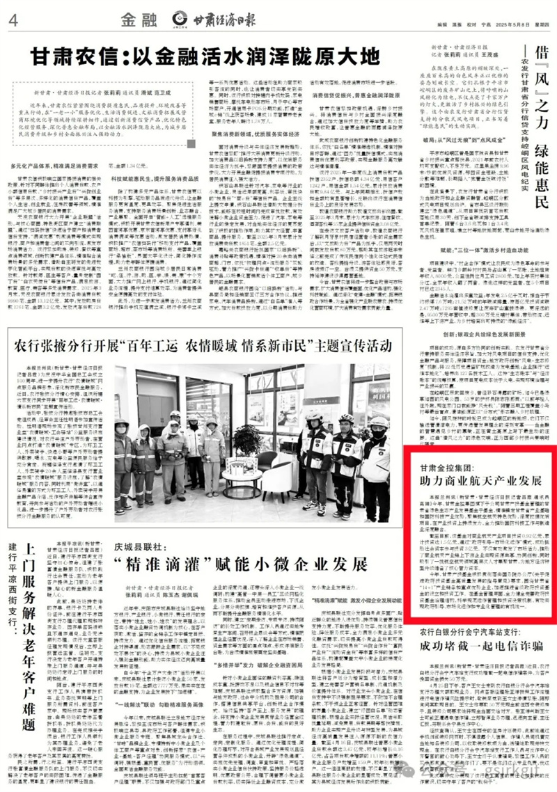 今年,开云手机官方网站-开云(中国)旗下子公司甘肃产投基金管理的甘肃省绿色生态产业发展基金子基金,精准锚定甘肃省产业基础和国防科技产业优势,聚焦航空航天特色优势,深度挖掘优质项目,在产业投资上持续发力,全力推动国防科技工作与制造业深度融合。