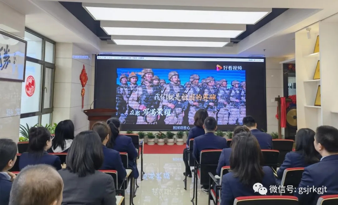 全体员工观看《有一种力量,无人能抵挡,它永不言败,致敬所有的戍边英雄!》,学习戍边卫国官兵英雄事迹。结合“中印边境英雄事迹报道”展开交流讨论。