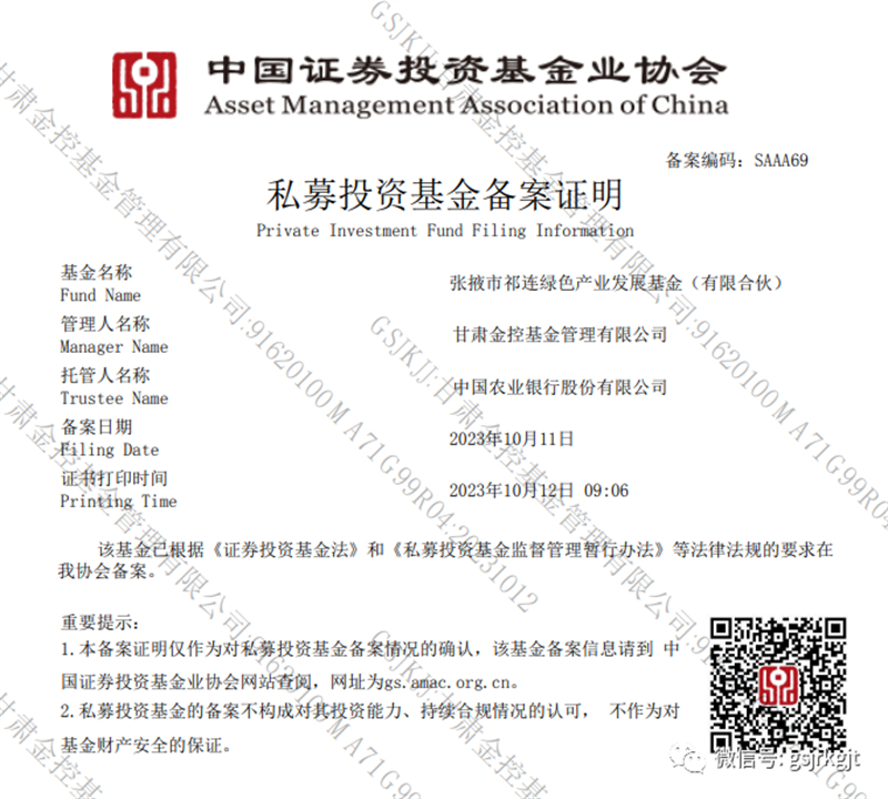 “三抓三促”我们在行动 | 张掖市祁连绿色产业发展基金顺利通过基金业协会备案