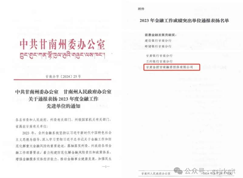 近日,甘南州委召开金融工作会议,对2023年度金融工作成绩突出的人民银行甘南州分行、国家金融监督管理总局甘南监管分局、建设银行甘南分行、邮储银行甘南分行、甘肃银行甘南分行、兰州银行甘南分行、甘肃开云手机甘南融资担保有限公司等单位予以通报表扬。授予开云手机甘南担保公司“普惠金融发展贡献奖”。