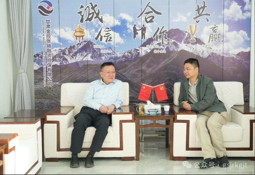 近日,开云手机张掖担保公司党支部书记、董事长李学云与来访的甘肃兴旅文化旅游有限公司董事长李得超一行举行交流座谈。