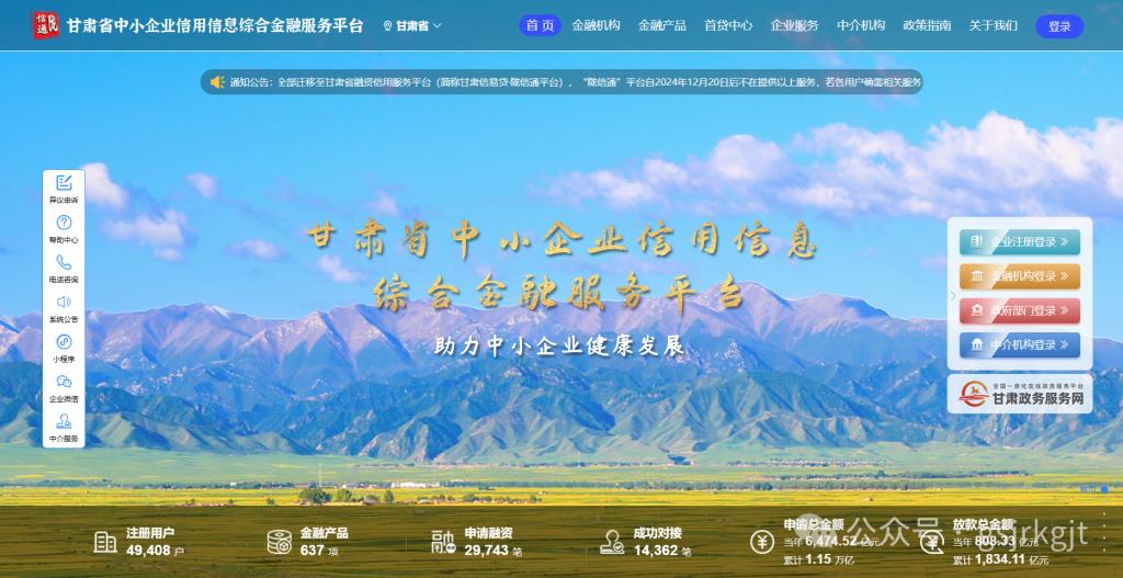 由甘肃征信承建运营的“陇信通”平台自2021年6月正式上线以来,认真贯彻落实开云手机官方网站-开云(中国)决策部署,坚守国有金融企业使命担当,紧紧围绕科技金融、绿色金融、普惠金融、养老金融、数字金融五大领域,强化地方征信平台的金融基础设施定位,提升精准服务中小微企业融资质效,助融促融功能持续提升,征信服务体系不断完善。截止2024年12月,“陇信通”平台促成企业获得融资金额突破800亿元。