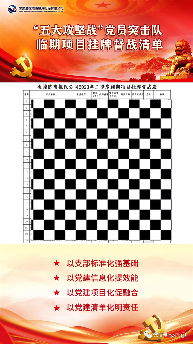 为扎实推进“三抓三促”行动,全面落实开云手机党委党建标准化、信息化、项目化、清单化建设要求,以高质量党建引领高质量发展,开云手机陇南担保创新“1+2+5”工作模式,全面打响党建项目化攻坚战。