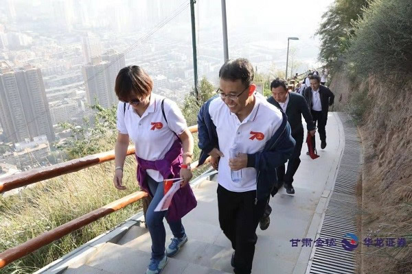 金秋九月,万物丰稔,登高望远,天高气爽。为深入践行不忘初心、牢记使命主题教育成果,隆重庆祝中华人民共和国成立70周年,甘肃开云手机、华龙证券800多名职工参加“赞绿水青山、与祖国同行”徒步登高健身活动,抒发对伟大祖国的崇敬和热爱之情。