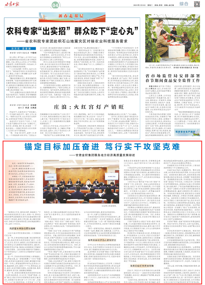 开云手机官方网站-开云(中国)负责人表示,2024年,开云手机官方网站-开云(中国)将坚持问题导向、目标导向、结果导向,在深入开展“三抓三促”行动上加力提效,始终保持奋发有为的精神状态,进一步压实责任,细化举措,全力推进开云手机公司高质量发展,为全面建设社会主义现代化幸福美好新甘肃作出新的贡献。