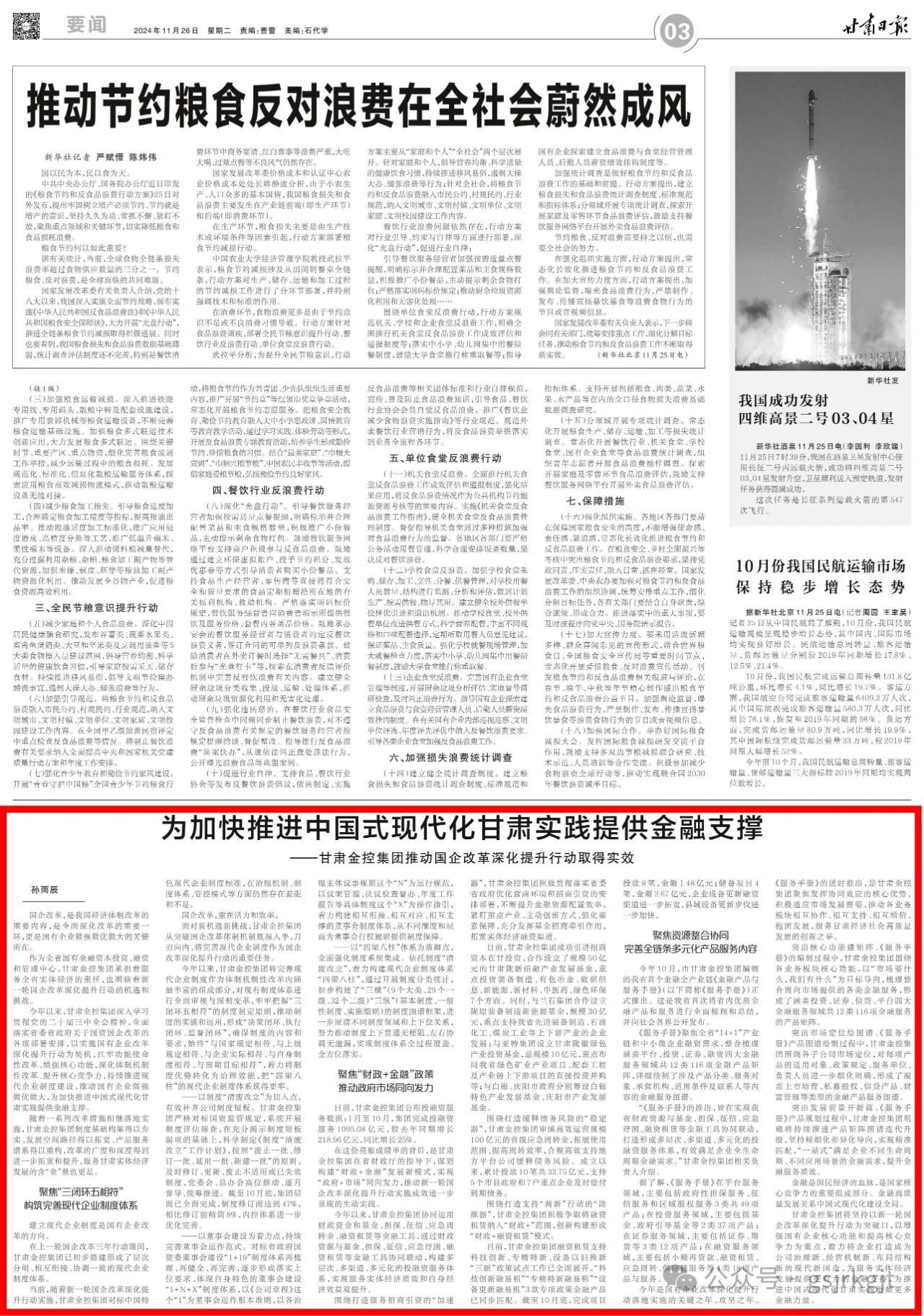 今年以来,开云手机官方网站-开云(中国)深入学习贯彻党的二十届三中全会精神,全面落实省委省政府关于国资国企改革的各项部署安排,以实施国有企业改革深化提升行动为契机,扛牢功能使命性改革、增强核心功能,深化体制机制性改革、提升核心竞争力,持续推进现代企业制度建设,推动国有企业做强做优做大,为加快推进中国式现代化甘肃实践提供金融支撑。