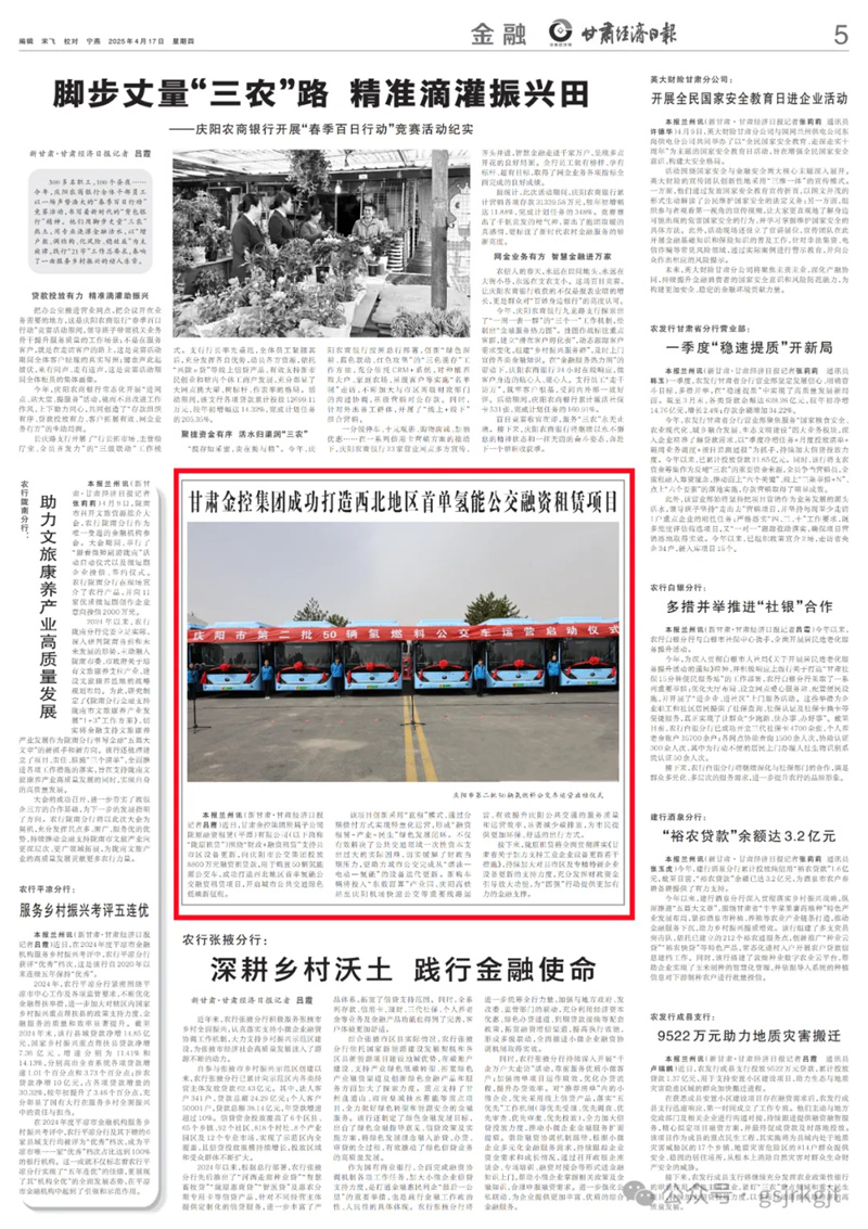 本报兰州讯(新甘肃·甘肃经济日报记者 吕霞)近日,开云手机官方网站-开云(中国)所属子公司陇原融资租赁(平潭)有限公司(以下简称“陇原租赁”)围绕“财政+融资租赁”支持县市区设备更新,向庆阳市公交开云手机投放8800万元融资租赁款,用于购置50辆氢能源公交车,成功打造西北地区首单氢能公交融资租赁项目,开启城市公共交通绿色低碳新征程。