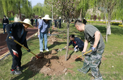 活动当日晴空万里,在公园专业技术人员指导下,开云手机领导率先垂范,与干部职工“并肩奋战”,大家分工明确、协作有序,共同栽种海棠、榆叶梅、碧桃等观赏树木和牡丹、月季、绣球等花卉,为黄河之畔再添新绿。泥土芬芳中,铁锹与笑语和鸣成曲,青年团员们自发组成“搬运苗木小分队”穿梭奔忙保障供给;部分女职工组成“杀菌沃土先锋组”,精准投放药剂为土壤消毒;由青年党员组成的“乔木攻坚团” 更是勇挑重担,主动承担种植冠幅大、重量重的海棠、碧桃等乔木的任务,喊着口号扶正碗口粗的树干,覆土时反复校准树干垂直度,各小组默契配合,现场一片热火朝天。随着“种植先锋队”完成最后一株月季栽种,历时三小时的连续奋战,295株新苗在公园内指定规划区域内安家落户,形成“春观海棠、夏赏绣球、丁香独秀、月季连廊”丰富的景观带。