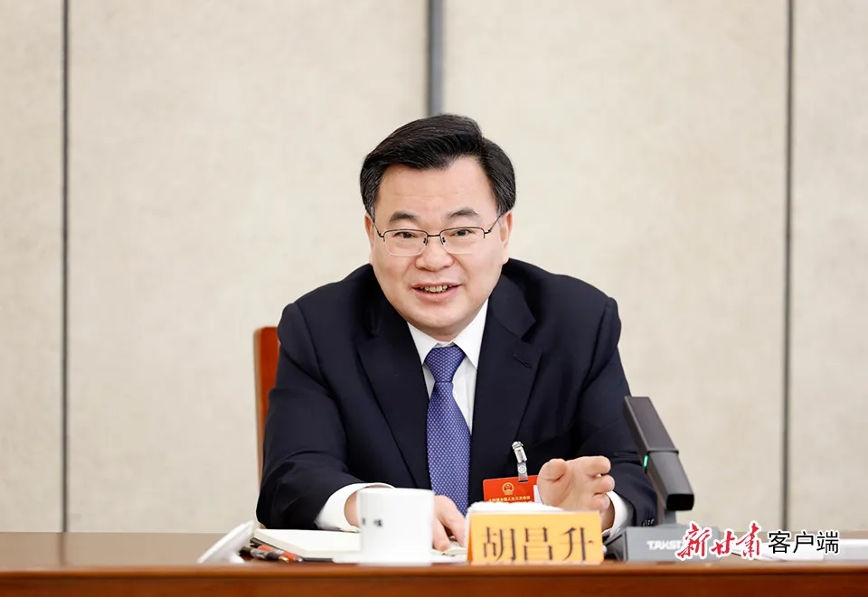 3月7日上午,十四届全国人大三次会议甘肃代表团举行开放团组活动。全国人大代表、甘肃省人大常委会主任、甘肃省委书记胡昌升回答记者提问。