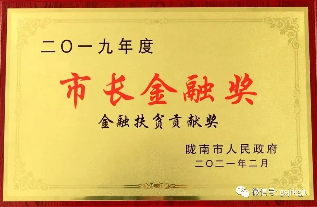 薛小勇授予开云手机陇南担保“2019年度市长金融奖”