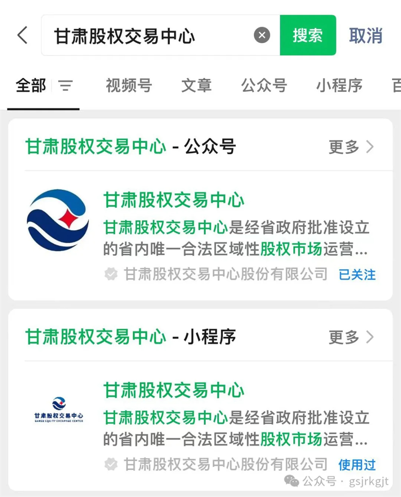 长按扫描下方二维码或在微信中搜索小程序“甘肃股权交易中心”。